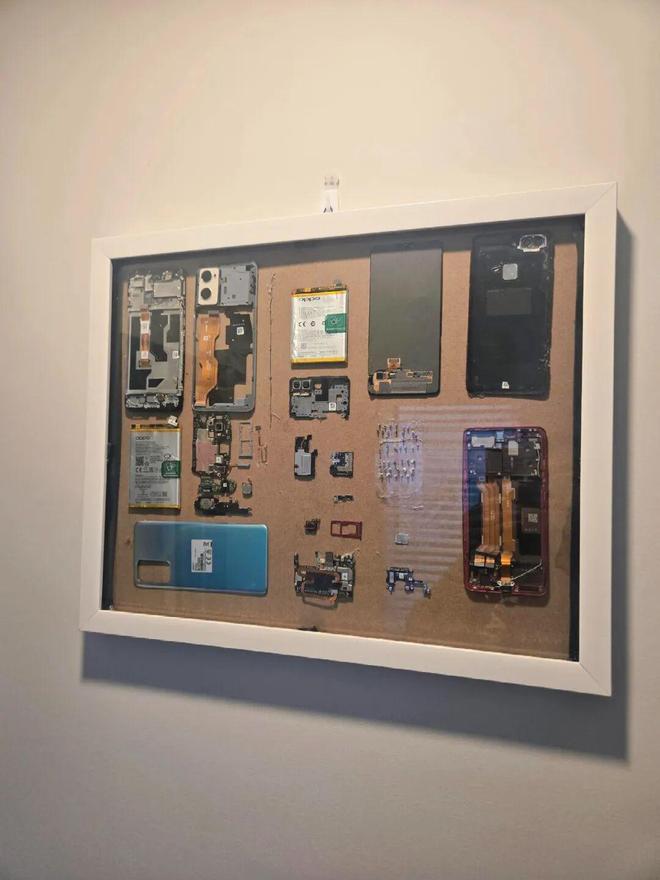 只需要网购一个画框,然后将手机完全拆卸下来,再用胶粘在画框上,就变成一幅创意装饰画了。