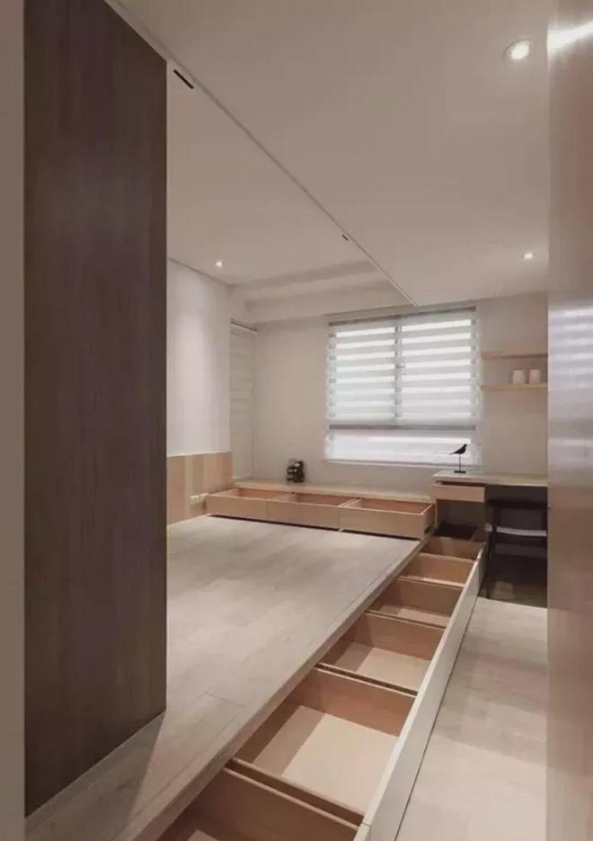 当然了不仅是客厅可以打造地台,卧室同样也可以设计地台床,像个大通铺一样,家里人口多怎么睡都能睡得下!