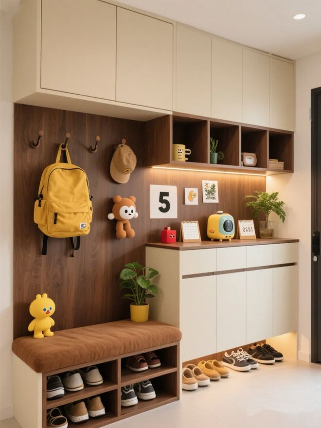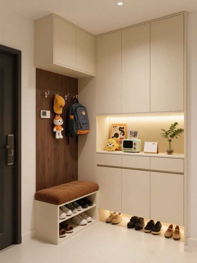 没有玄关并不意味着只能向公共区域“打主意”,只要巧妙地利用室内空间,同样能够解决鞋子收纳的难题。许多业主的实践表明,只要肯用心,小空间也能实现整齐有序的收纳效果。
