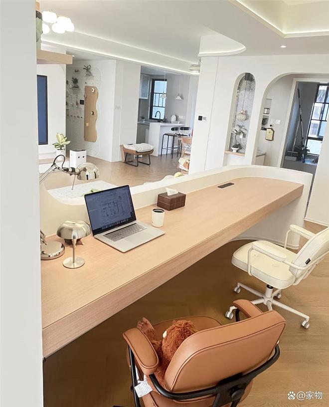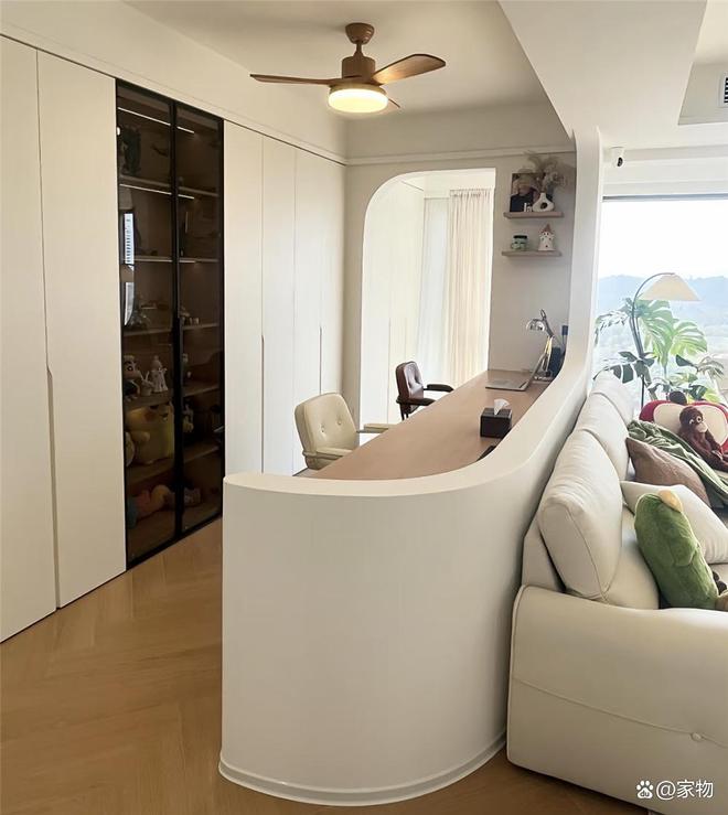 哦对了,险些忘了说,这书房边墙做的弧形也是恰到好处,既柔化了空间氛围,又能避免磕碰,可谓是一举两得了。