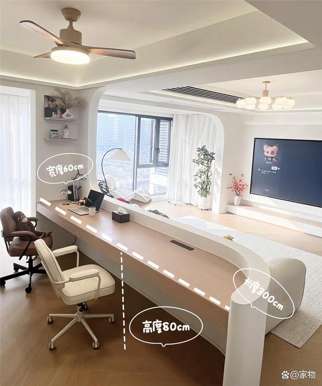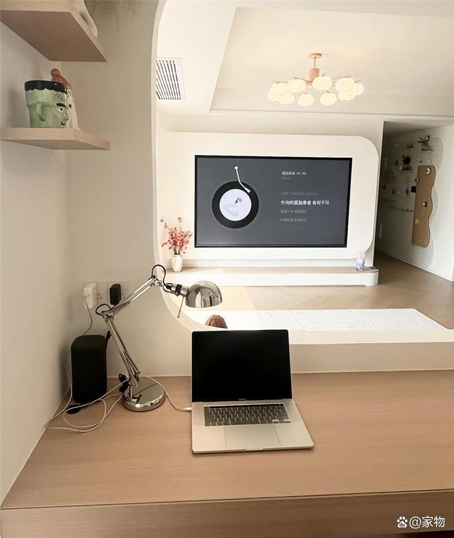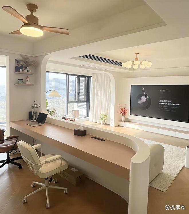该说不说,这次卧室书房敲掉墙后,真的让客厅,乃至全屋都显得宽阔通透了不少,两口子坐在这里办公、玩游戏,也能随时看到客厅和其他空间内的布置,可谓是“纵览全局”,要比闲置一间次卧室住着舒服多了。