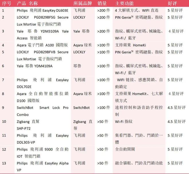 香港电商平台卖得最好的13款智能锁:飞利浦、耶鲁、LOCKLY、Aqara、SwitchBot、直邦……这些品牌都上榜了