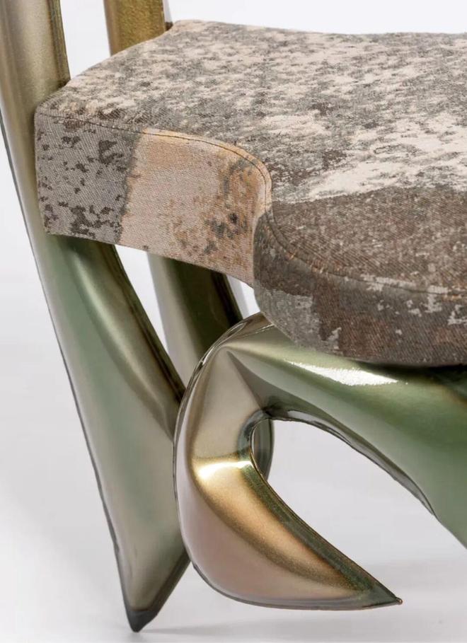 图3:Made by ASTRONAUTS xSERAPIS.“《拉拉与卡律布斯斯》椅,粉末涂层钢、不锈钢、树脂,塞拉皮斯铁锈再生棉提花软包。图片由宇航员制造提供。