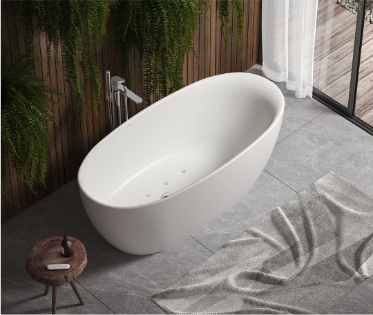 Trento 特兰托® 独立式人造石按摩浴缸巧妙融合科技与经典美学设计。Air System气泡按摩系统位于浴缸底部,搭载8个气泡按摩喷嘴,通过独立防水遥控器调节气泡强度,适合日常洗浴放松需求。浴缸整体采用创新型DuroCast®人造石材质,具有坚固耐用、触感舒适的特性。这款浴缸能与任何卫浴风格无缝搭配,在舒适度、耐用性和美观性上带来一步到位的高阶享受,更能确保日常使用中的长久稳定与易维护。