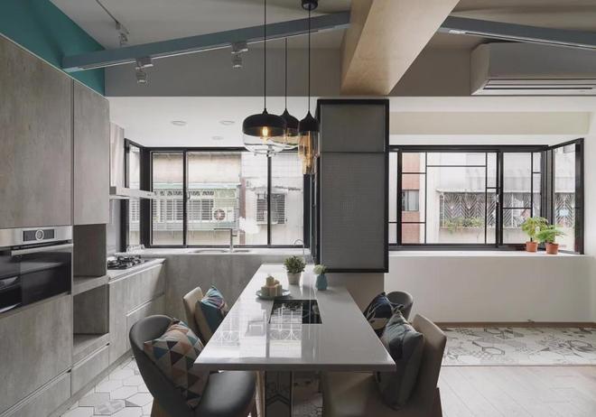 因为横厅本身比较宽敞,中间加一个岛式露台,设计成开放式厨房,加强家庭成员之间的交流,也是一个不错的想法。