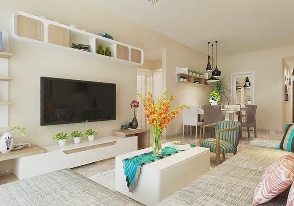 靠墙摆放沙发仍然是一个很大的选择。此时电视墙可以作为隔断设计,划分不同的功能区域。半墙设计既保证了空间的通透性,又丰富了空间层次。