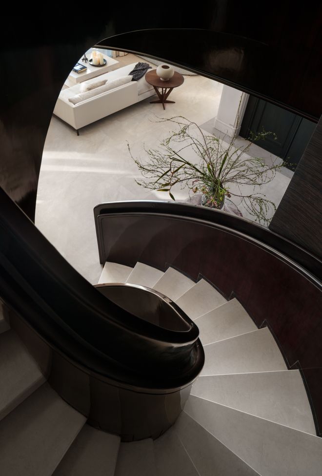 这种对生活真相的关照,首先体现在对楼梯、走廊及转角等过渡区域的重塑。在润园,它们被赋予了缓冲情感的意义,是连接不同代际、不同情绪状态的“灰空间”,承载着停顿、回望与不期而遇的交谈。光影在这些转折处被刻意放慢,使动线在连接空间的同时,也成为了调节心理节奏的媒介。这些看似不显眼的地方,恰恰记录了生活中最真实的温度。