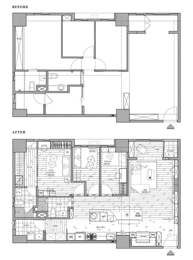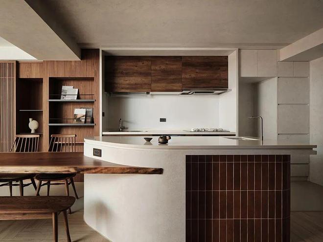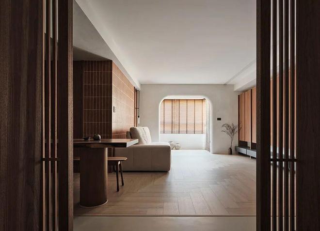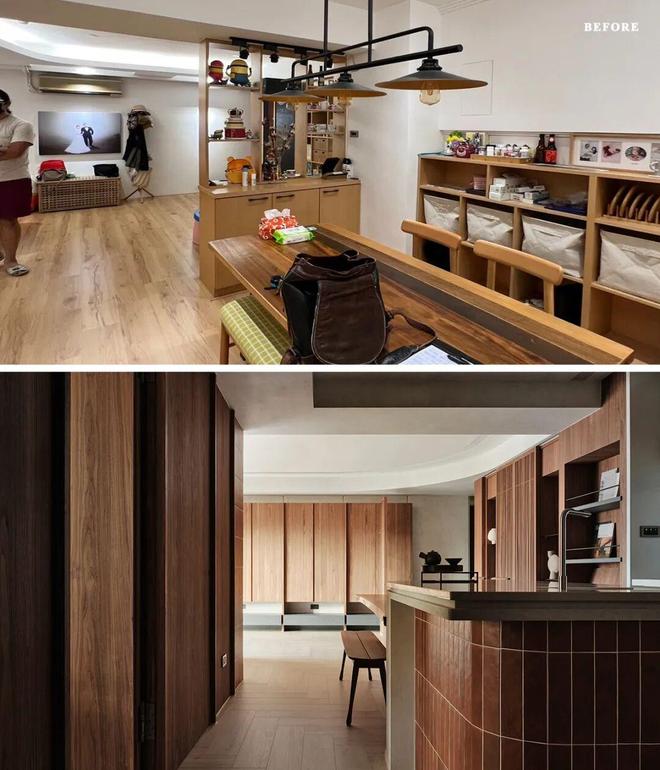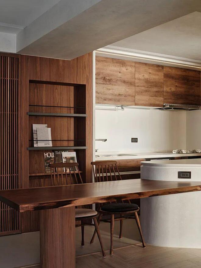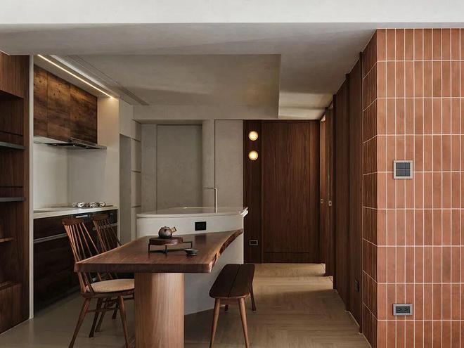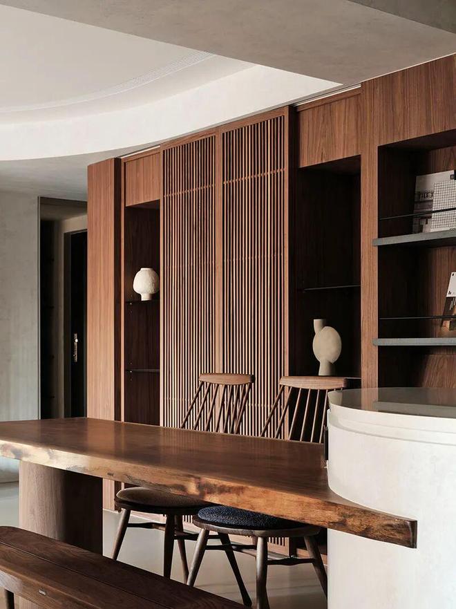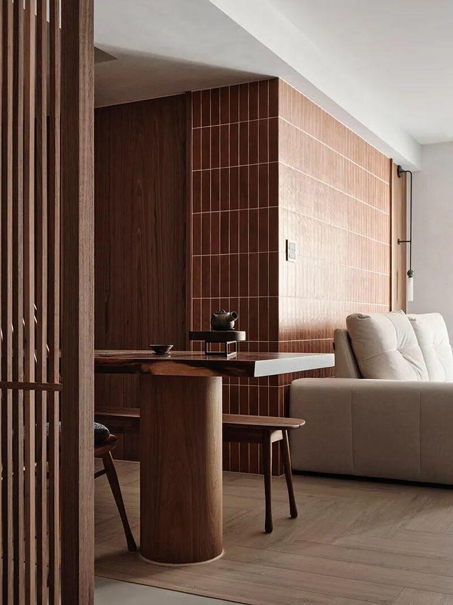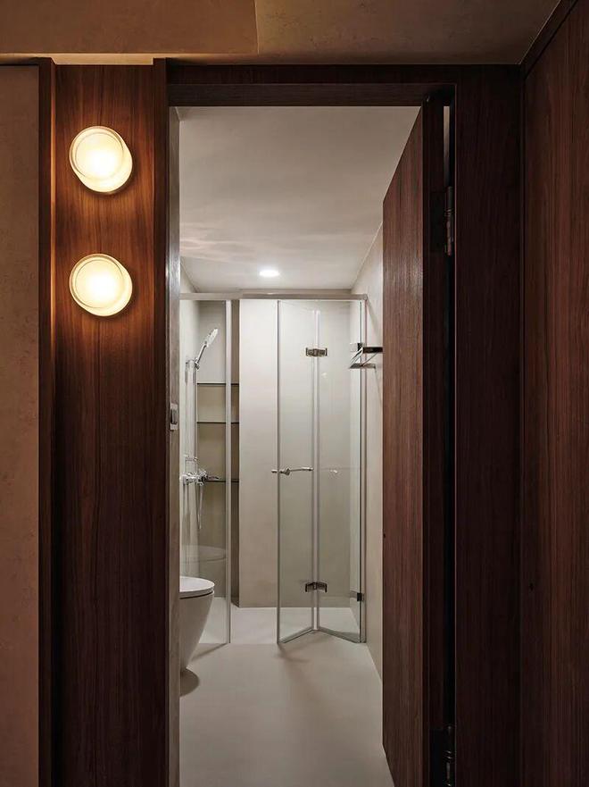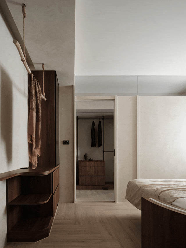 则巧妙运用原木与麻绳构筑出一处挂衣区