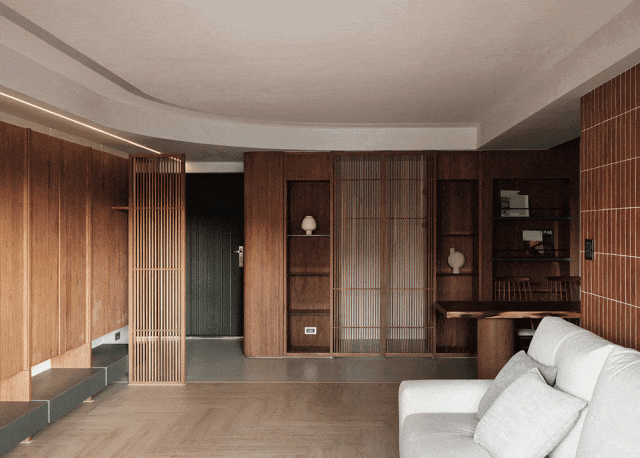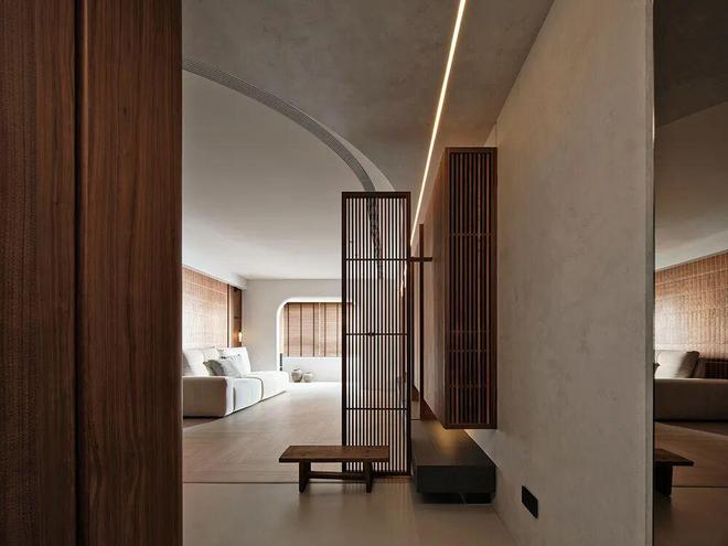 线灯自入口一路延续至电视墙,增加线条的连贯感