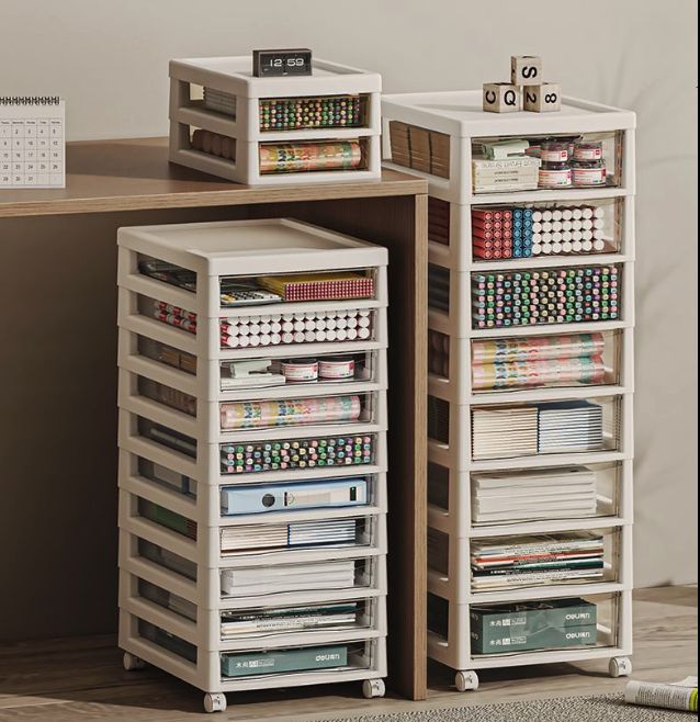 杂物越堆越多,脚都没地方伸……这款桌下小柜子,透明抽屉好辨认,推拉顺滑不卡顿。底部带滑轮,轻轻一推就能移位,需要固定时脚踩即锁。桌面重回整洁,打工心情都变好了!