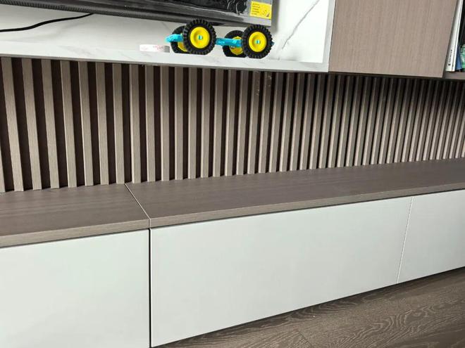 网友@磊小磊:悬着的心终于死了,心心念念的悬浮背景墙做好了,但一看到背面缝隙里的灰,我就知道又要翻车了。