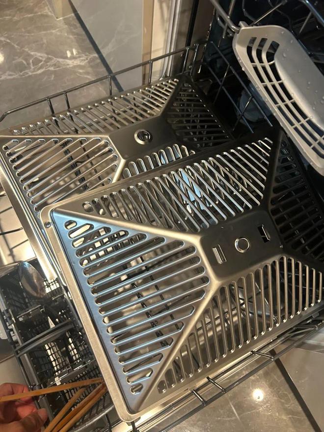 网友@胡一叨:以前洗油烟机过滤网都是喷清洁剂来清洗,费力麻烦还洗不彻底。没想到用洗碗机清洗一下就解决了,洗出来的就和新的一样,洗碗机真是个好东西。