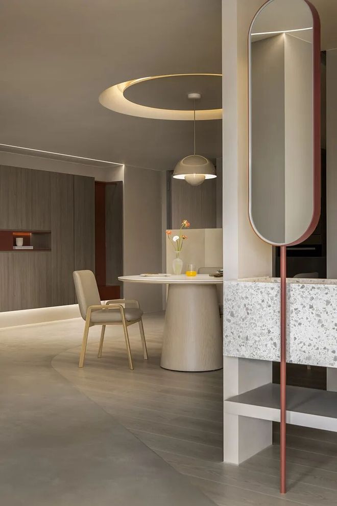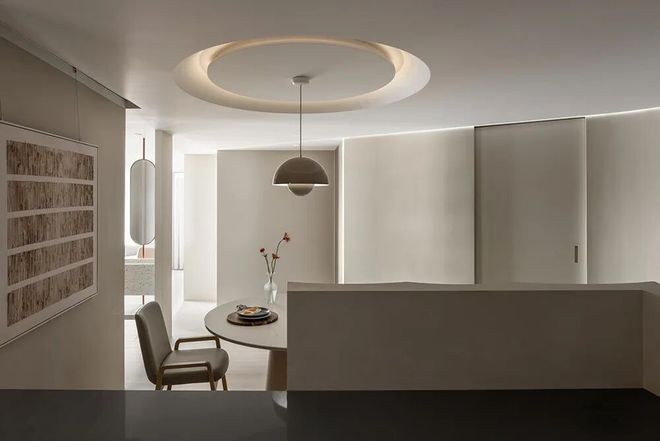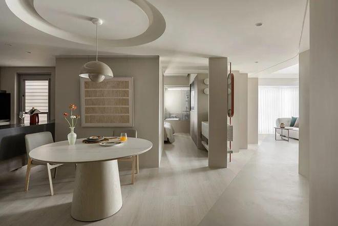 圆融意象延伸至餐桌与天花板