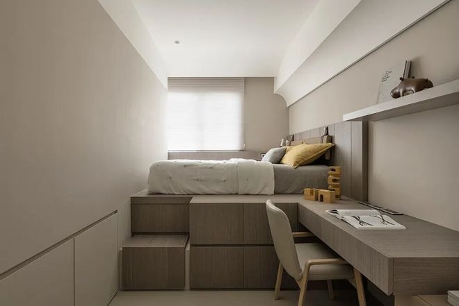 姐 姐房与弟弟房是以木作床台架高的方式呈现