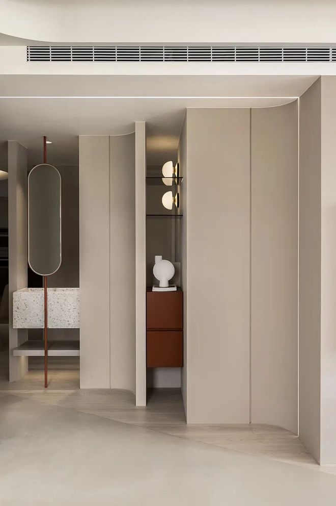 木作圆弧矮墙划分玄关