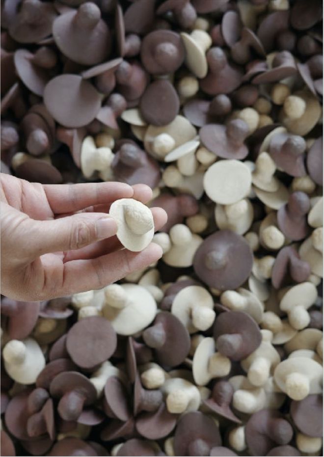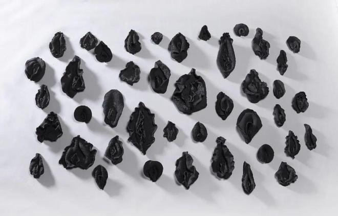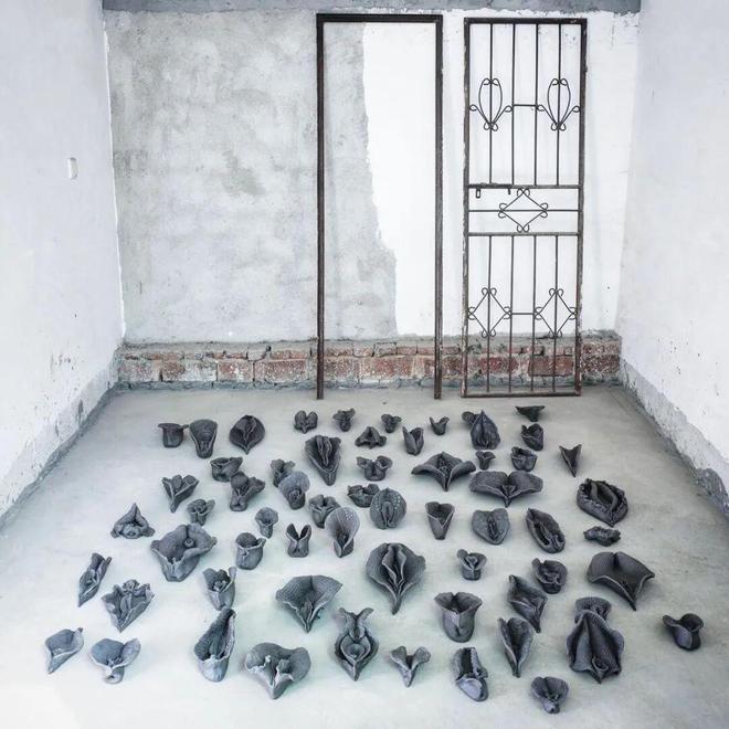 她用手工陶瓷捏塑出数百个形态各异的隐私器官,有的饱满如花,有的干瘪带疤,有的不对称,有的覆着妊娠纹般的裂痕。