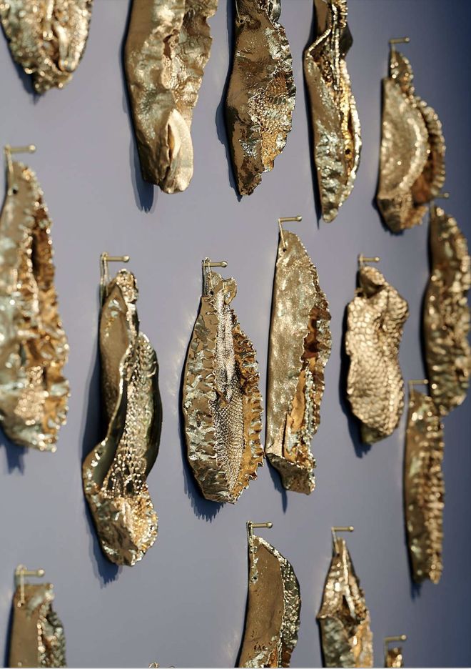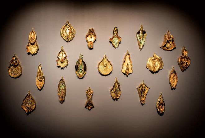 展厅中央,女性每一处隐私部位都覆着蕾丝、施以金箔、被铸成独特的几何形态。