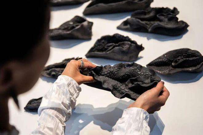 她将源自欧洲宫廷、象征着精致与手工传统的蕾丝图案,精心压印在陶瓷表面,同时使用特殊泥料呈现出如金属铁般的冷峻光泽。