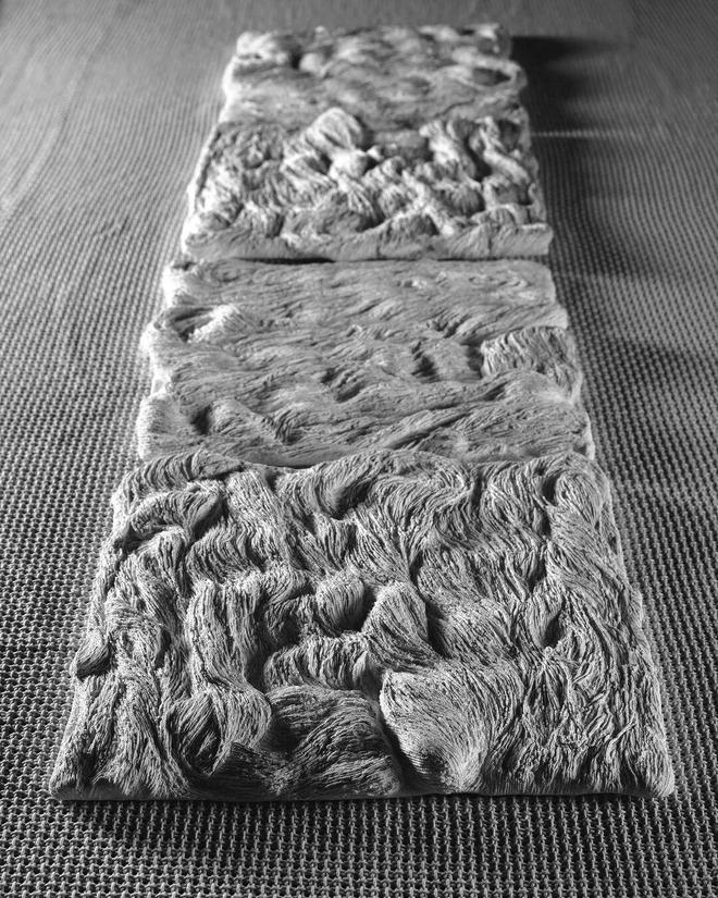 为了创作《妈妈》系列,她花费数年时间,走访多地,从全国各地收集了38块来自不同家庭、纹路磨损各异的旧搓衣板。