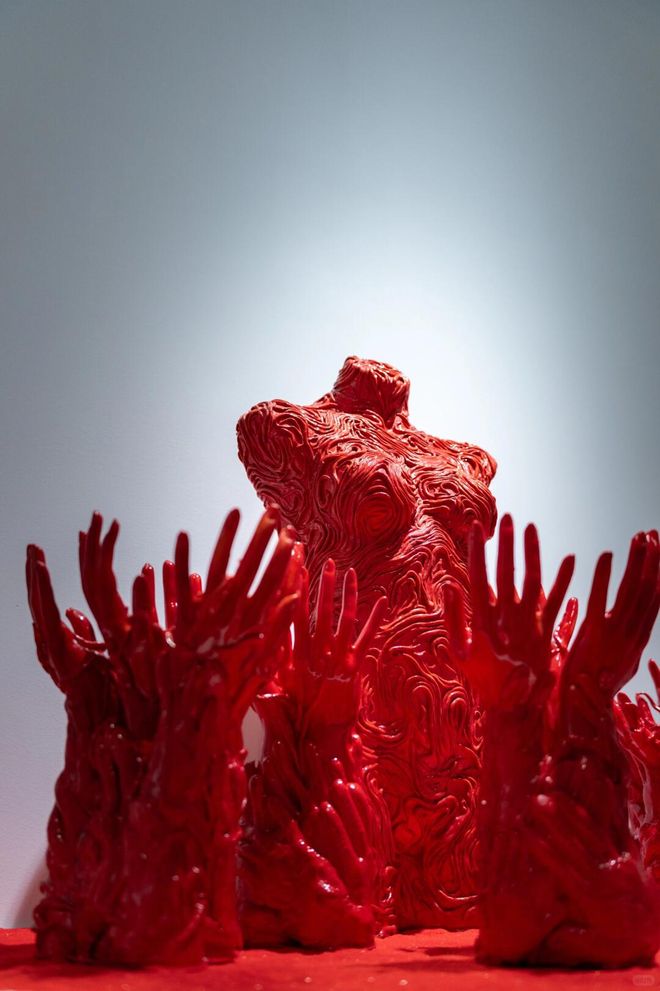 长久以来,女性生殖器官被视作色情工业中的欲望对象或道德话语里的羞耻源头,而柳溪将其作为神圣主体,置于美术馆的聚光灯下。