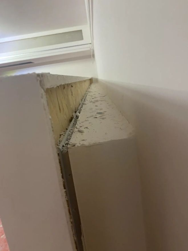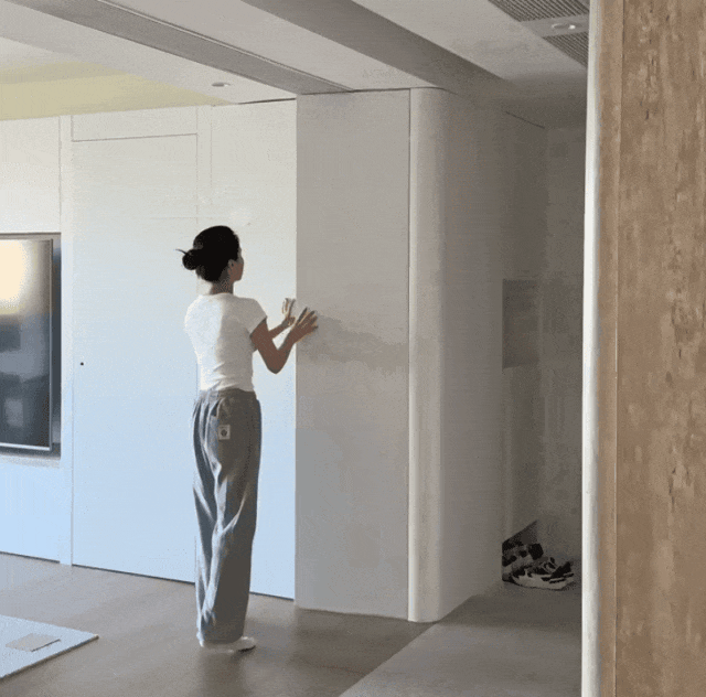 网友@磊小磊:悬着的心终于死了,心心念念的悬浮背景墙做好了,但一看到背面缝隙里的灰,我就知道又要翻车了。