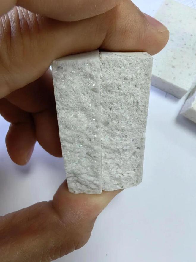 这种石英石看似没什么问题,可实际使用时,更容易出现开裂、发黄、渗色问题,且耐高温和耐冲击性能也会明显不足。