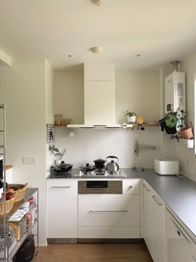 如果说不锈钢台面会给人一种冰冷感,那么实木台面自带的温暖、自然属性,则为空间提供了一抹柔和的生活温度。