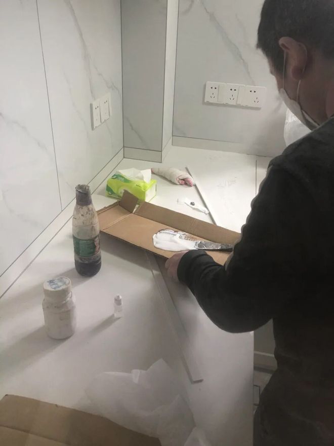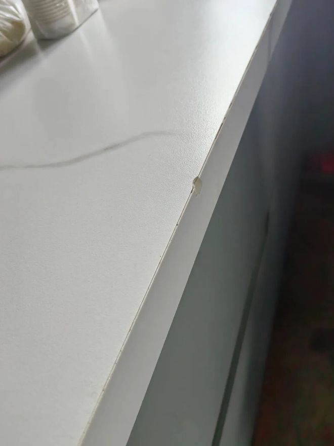 网友@kk的窝:奉劝大家,家里装修好了,就别让师傅过来修补石英石台面了,鬼知道我清理了多少遍,太让人绝望了。