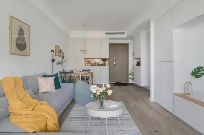 浅灰色的沙发和白色的茶几装饰,整体效果更为好看,简约又美观,实用为主,颜值也很高,这些家具在网上买就可以了。