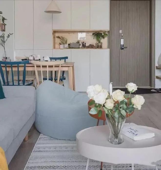 进门后看到左手边就是餐厅,而进来直走就是客厅了,整个室内的采光非常好,虽然空间不算很大,但是明亮的环境也让整个空间更加的舒适和温馨。再加上北欧风的装修设计,整体看起来会更加的好看和舒适。