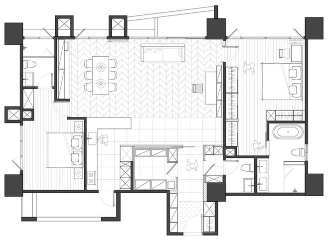 并透过材质语汇建立秩序感,避免视觉凌乱