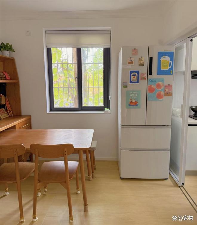 不得不说,家里虽然是个只有60㎡的小户型,但采光真的是非常不错,不仅厨房卫生间都带窗,算是全明户型,餐桌的位置甚至还有一扇外窗,再加上楼层较低,窗外的绿荫也为小家内增添了几分生机与活力。