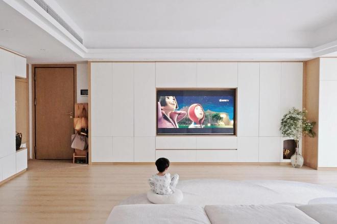 小结:电视满墙柜的设计核心就是“藏”,不需要做展示区。东西全部藏起来,空间自然就干净利落了。
