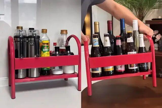 当然,它的用途不止这些,当作厨房台面置物架时,可以把瓶瓶罐罐的调料收纳得井井有条,取用起来一目了然;
