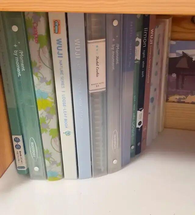 这样就完美解决了活页本参差不齐的问题,称得上是严丝合缝的收纳,我觉得我这样摆放简直太聪明了!