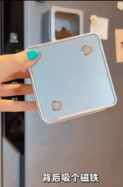 在它背后贴上隐磁贴,就可以贴在冰箱门上,瞬间变成网红磁吸调料盒。