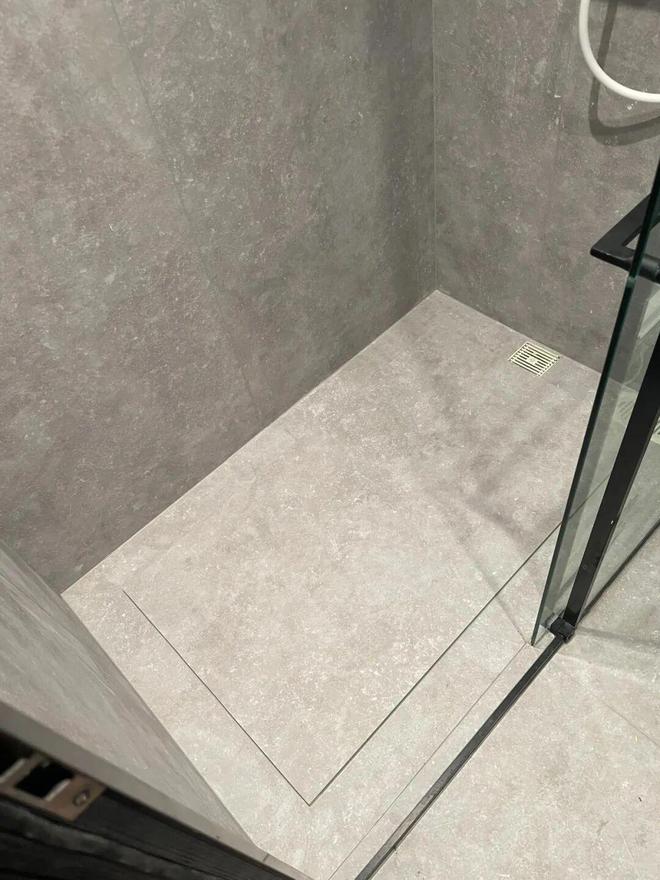 建议:淋浴地面返水坡度才是关键,若真的很喜欢那种一圈排水槽设计,中间可以直接用整块大地砖处理,好打理不藏脏。