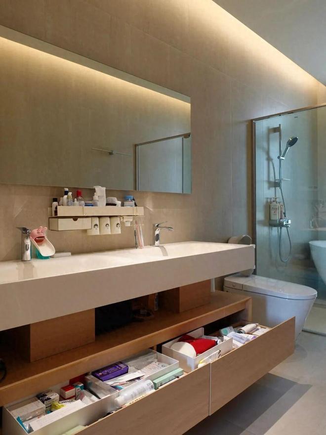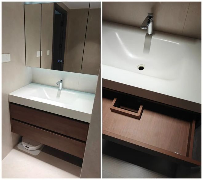 建议:最稳妥的方式,还是给卫生间安装一体台下盆,并给柜体做U型抽屉设计,收纳更好用。