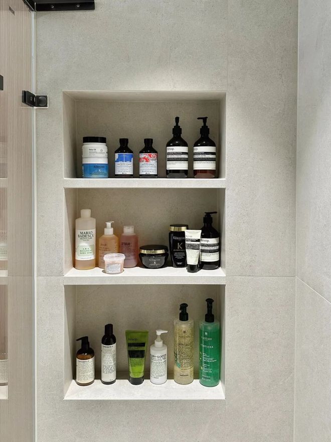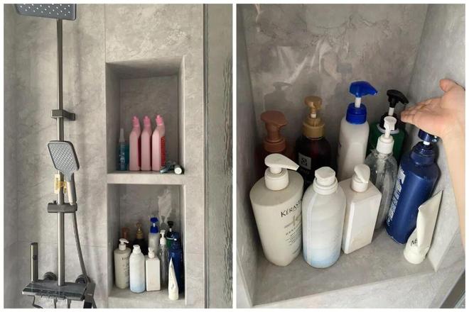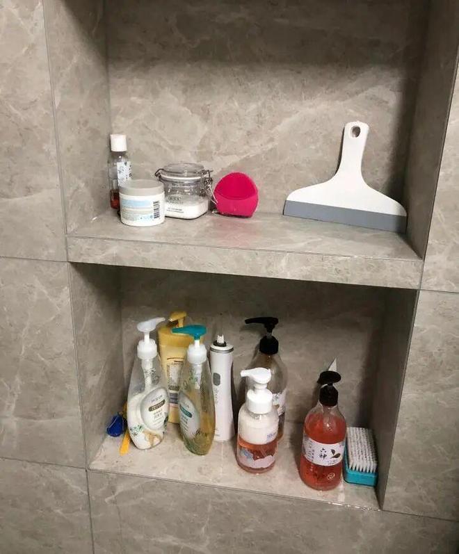 网友@西小夕:卫生间壁龛真的大可不必,我家壁龛尺寸30*45*23cm,在空间塞满的情况下,里面的瓶子只能抽出来使用,特别不方便。