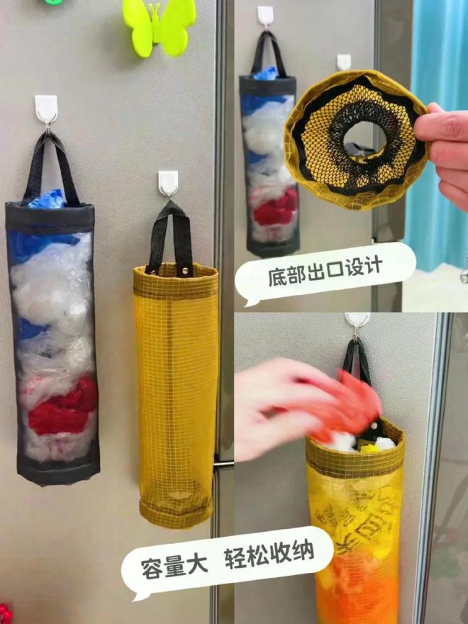 有了它的存在,不仅不占用空间,而且塑料袋本身又没什么重量,不会对柜门有任何影响的。