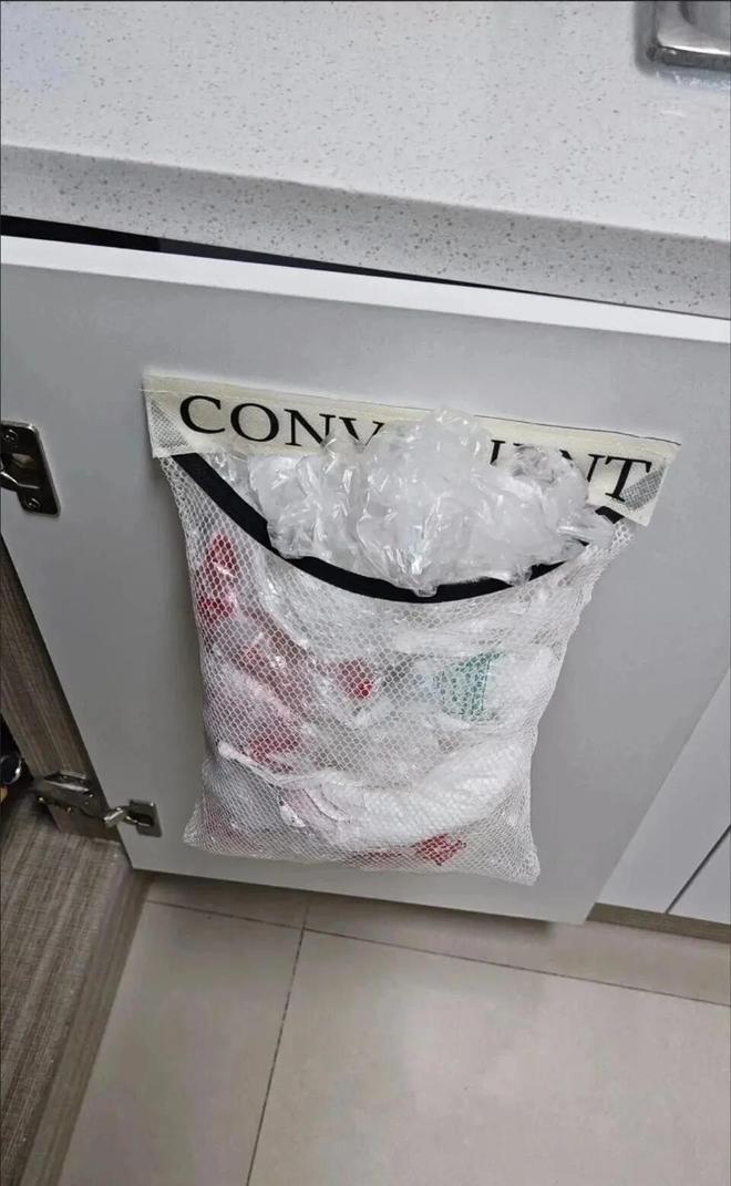 因此,00后就想办法在柜门里面装一个小网袋,专门用于收纳可二次使用的塑料袋。