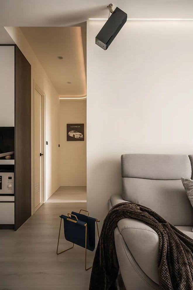 玄关以灰色涂料搭配壁灯,轻透柔和暖黄光氛
