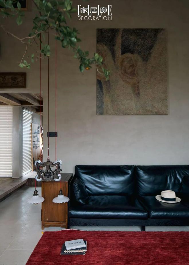 旁边悬着他用谷仓吊轮改造的吊灯。