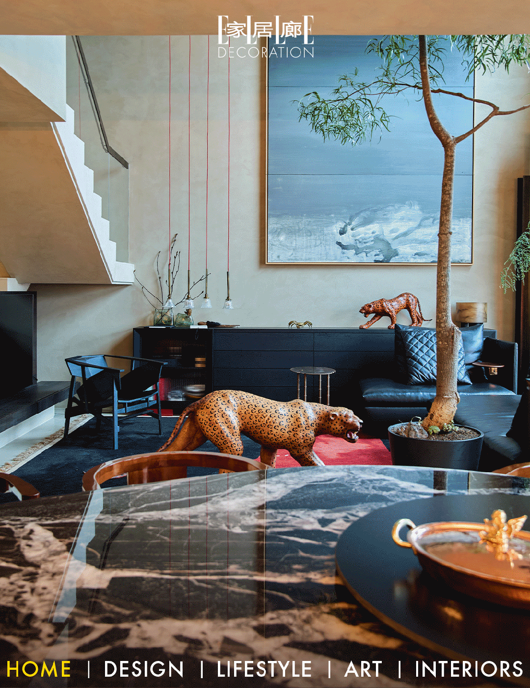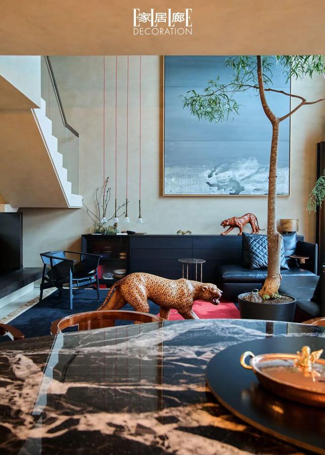 两只豹子雕塑是他购入的法国艺术家的中古艺术品,