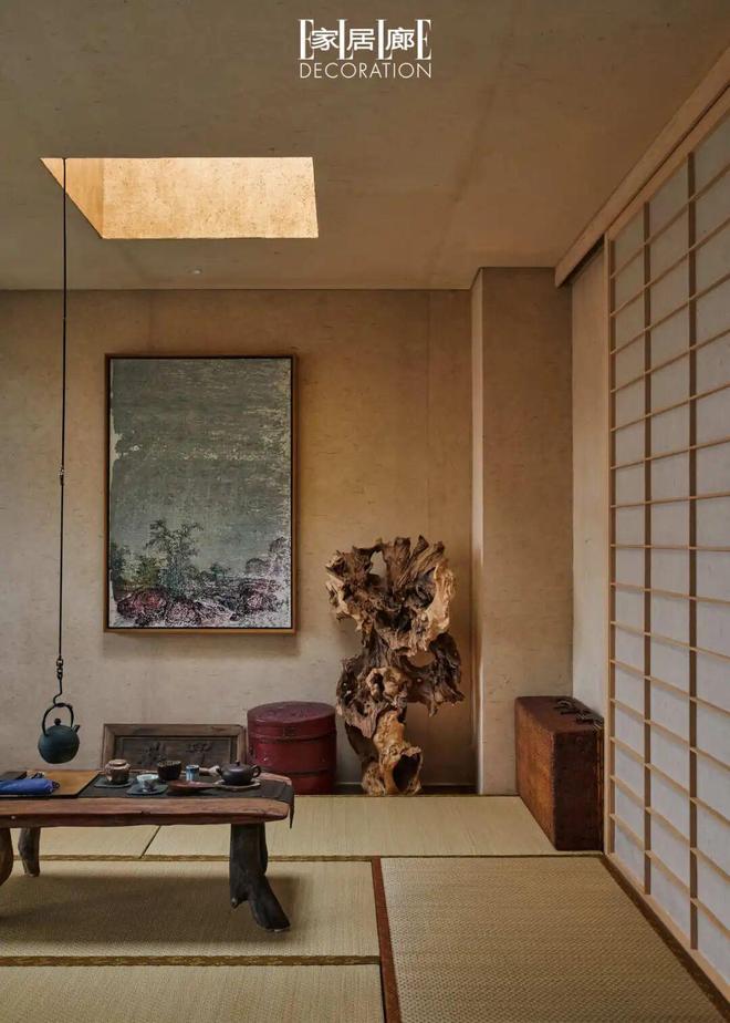 天井给茶室营造了自然照明,