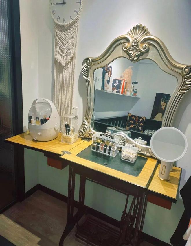 网友@一拾:一直没找到合适的洗手台,就花200块收了一台老式缝纫机自己改造。总体比较满意,既适合家里的风格,又十分有个性。