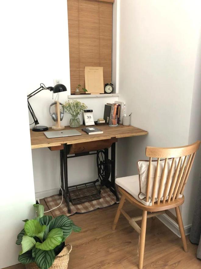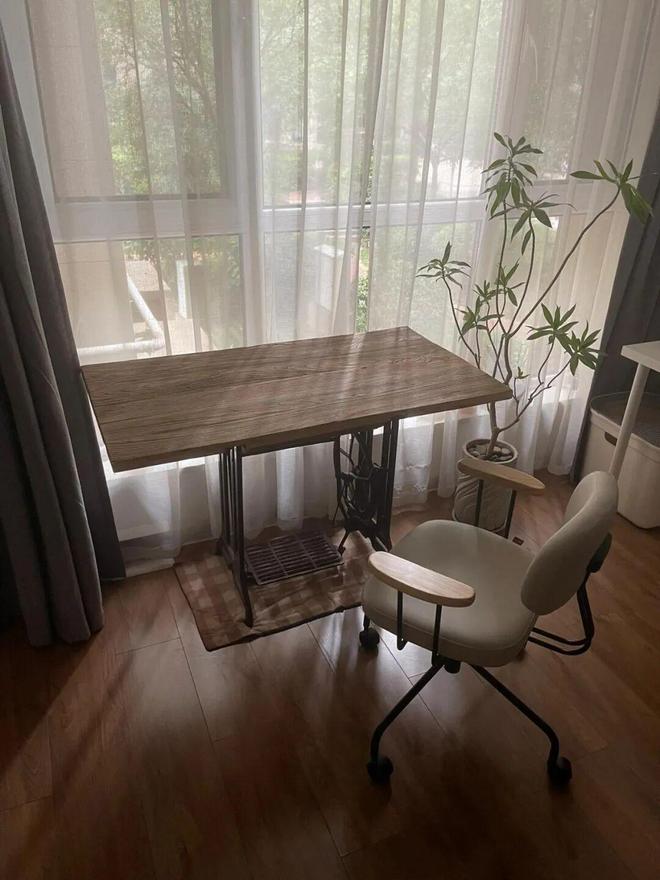 相较于传统的书桌,缝纫机书桌不仅自带复古气质,阅读办公时还可以踩踏板,趣味无穷。