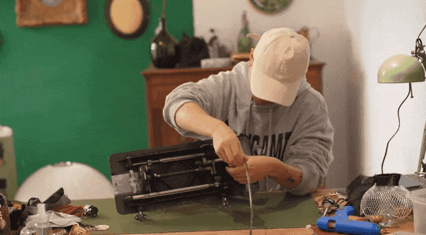 只需要将机头部分拆出来,并清洁干净,再网购一盏工业风的台灯绑上去即可。不仅可以照明,无聊时还可以转着玩,特别解压。