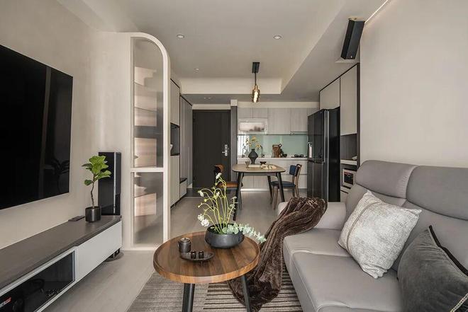 黑白色调的冷冽被玻璃与圆弧悄悄中和