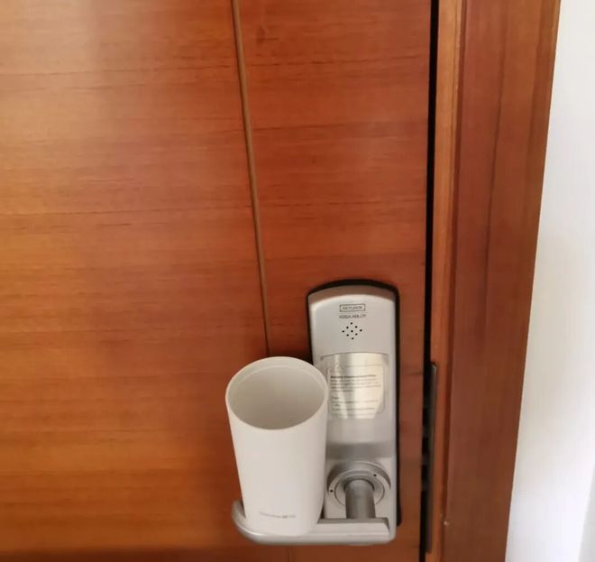 把漱口杯挡在门把手上,就成了最简单的报警器。